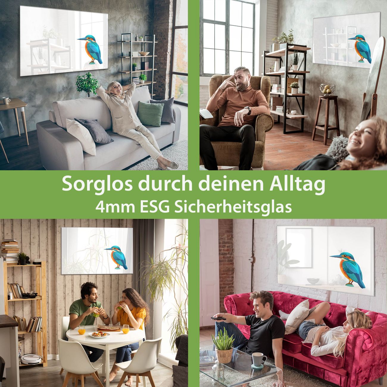 - Material: 4mm Sicherheitsglas mit Metallrückwand