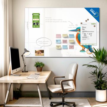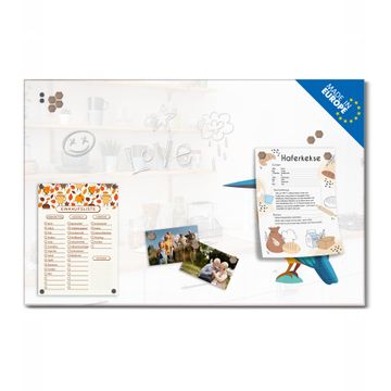Auf der glatten Glasoberfläche lassen sich Termine, Rezepte oder Notizen ganz einfach mit Kreidestiften festhalten und rückstandslos entfernen. Starke Neodym-Magnete halten Ihre wichtigsten Erinnerungen sicher an Ort und Stelle. So entsteht Ihre ganz persönliche Ideenwand - jeden Tag neu.