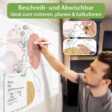 Die banjado Glas Magnettafel mit dem Motiv Motiv Elegante Linienblüte verbindet Funktionalität mit Stil. Sie ersetzt das Zettelchaos durch klare Strukturen und bringt dabei eine warme, natürliche Atmosphäre in Ihr Zuhause. Ob im Büro, in der Küche oder im Eingangsbereich - dieses Design-Board zieht Blicke an und sorgt für Ordnung mit Charakter.