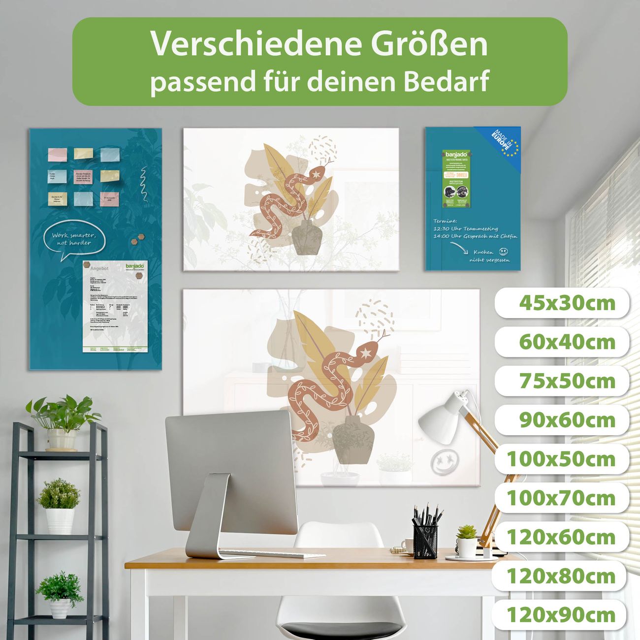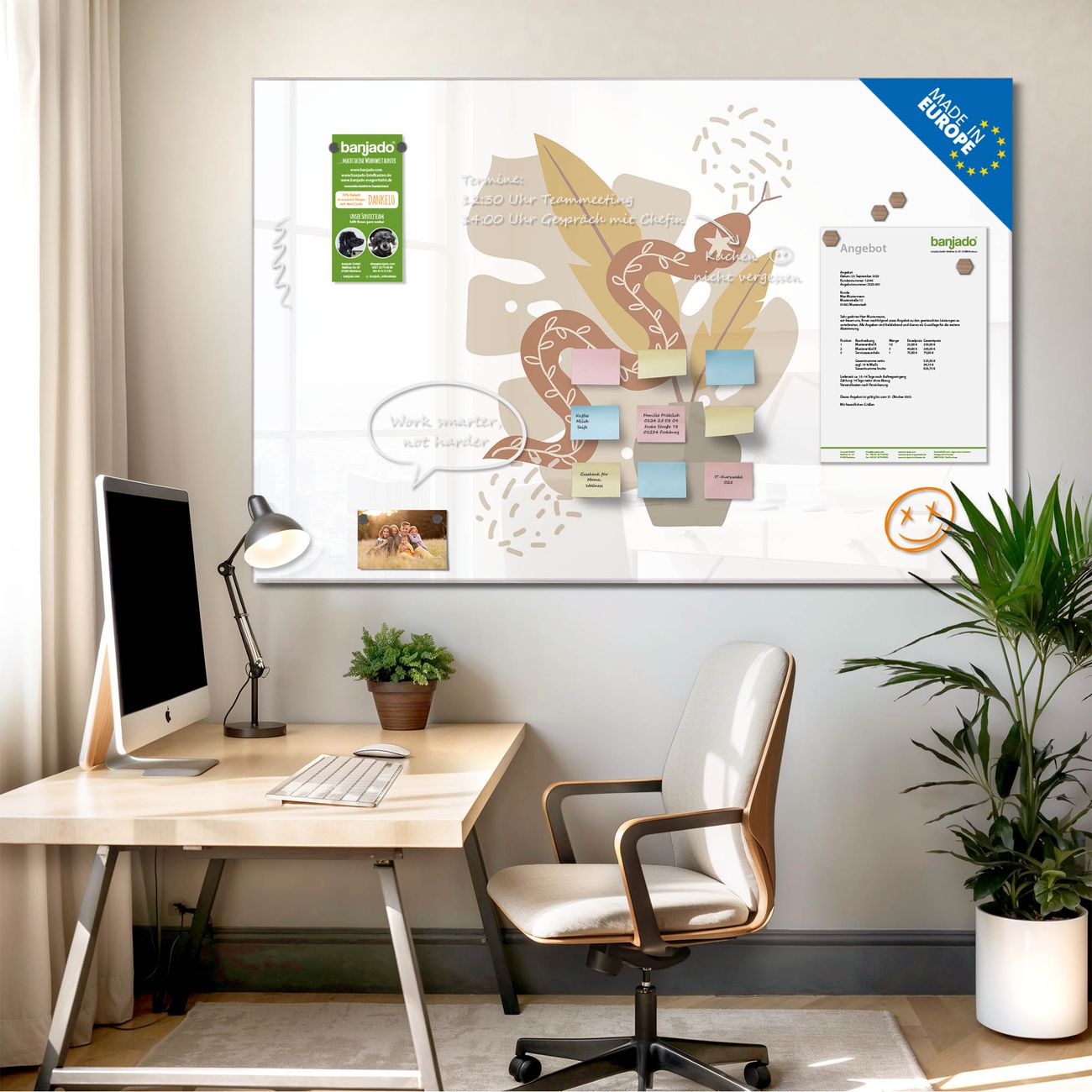 Jede Glas Magnettafel wird in unserer Werkstatt von Hand gefertigt und sorgfältig geprüft. So erhalten Sie ein echtes Qualitätsprodukt, das Funktion und Ästhetik perfekt vereint.?? Warum banjado?