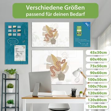 Die banjado Glas Magnettafel mit dem Motiv Motiv Elegante Schlange verbindet Funktionalität mit Stil. Sie ersetzt das Zettelchaos durch klare Strukturen und bringt dabei eine warme, natürliche Atmosphäre in Ihr Zuhause. Ob im Büro, in der Küche oder im Eingangsbereich - dieses Design-Board zieht Blicke an und sorgt für Ordnung mit Charakter.