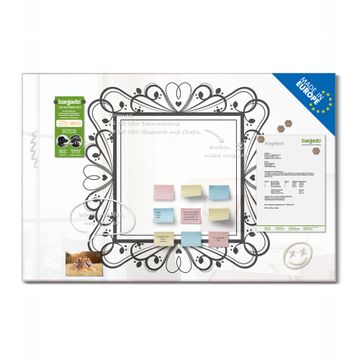 Die banjado Glas Magnettafel mit dem Motiv Motiv Elegantes Herz-Ornament verbindet Funktionalität mit Stil. Sie ersetzt das Zettelchaos durch klare Strukturen und bringt dabei eine warme, natürliche Atmosphäre in Ihr Zuhause. Ob im Büro, in der Küche oder im Eingangsbereich - dieses Design-Board zieht Blicke an und sorgt für Ordnung mit Charakter.