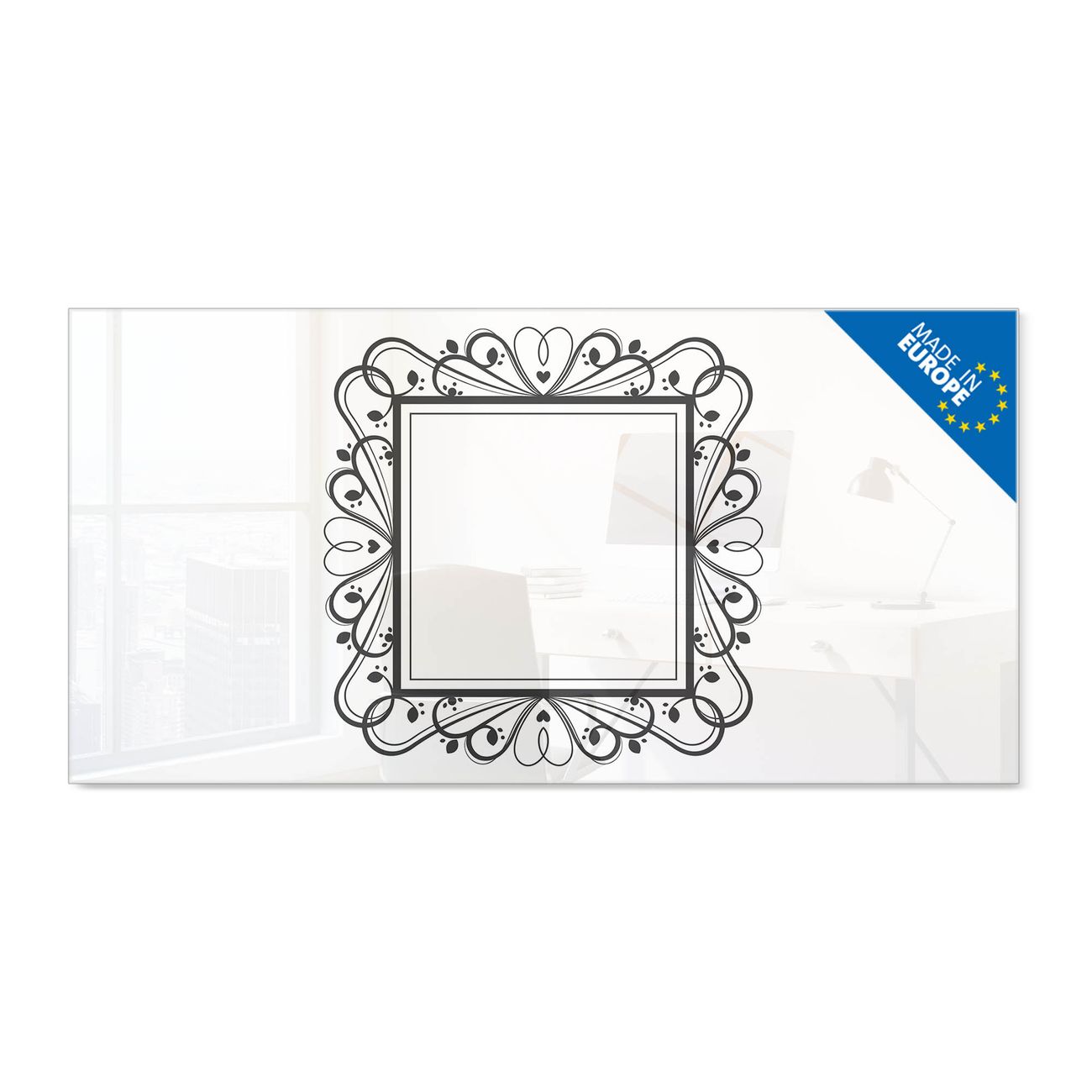 Glas Magnettafel im Querformat Motiv Elegantes Herz-Ornament