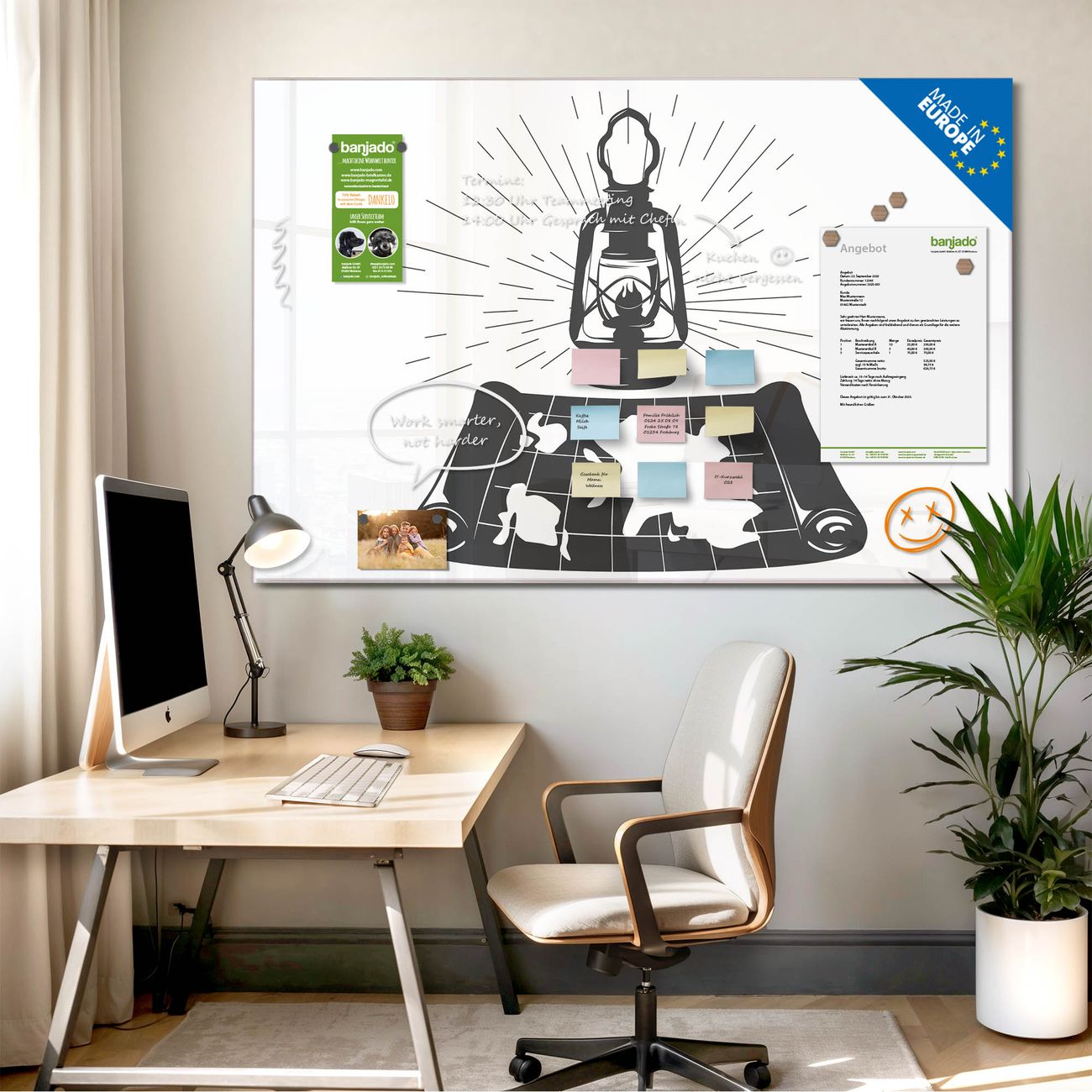 Glas Magnettafel im Querformat Motiv Entdecker-Laterne