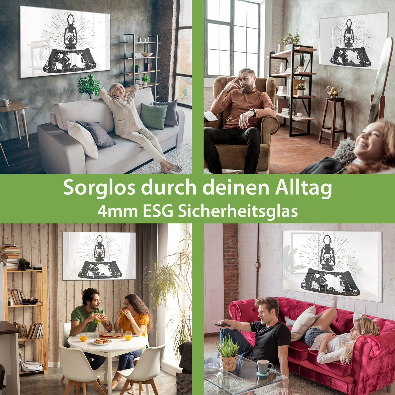 - Material: 4mm Sicherheitsglas mit Metallrückwand