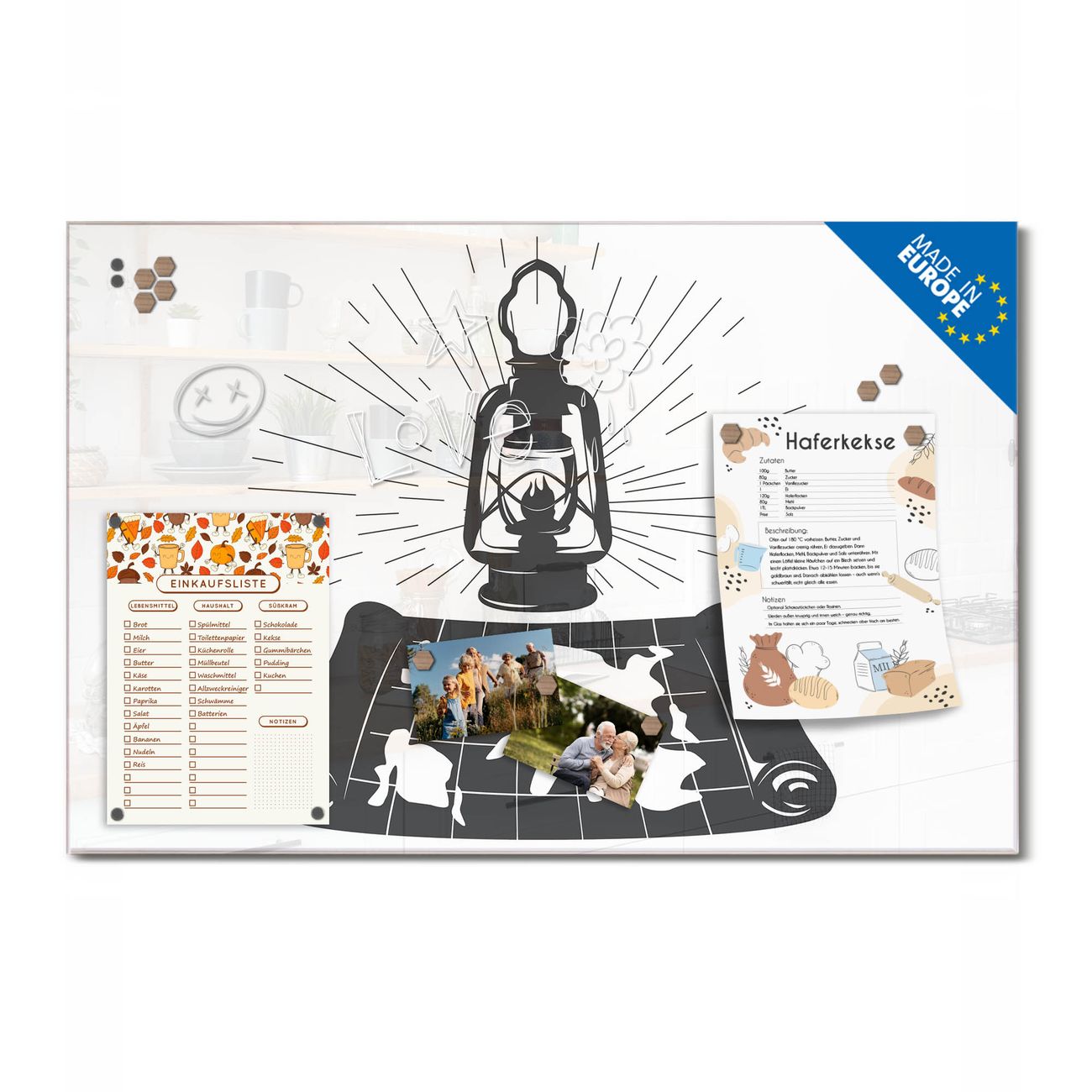 Ein Stück Design, das Ihren Alltag organisiert. Schreiben, heften, inspirieren - alles an einem Ort. Qualität, die man spürt. Montage leicht gemacht. Handwerk mit Herz - veredelt in Sachsen. Einzigartiges Design mit Motiv Motiv Entdecker-Laterne Beschreibbare Glasoberfläche, leicht zu reinigen Starke Magnetkraft durch Stahlrückwand Inklusive 4 Neodym-Magneten Flexible Montageoptionen Handveredelt in Sachsen - Qualität, die bleibt