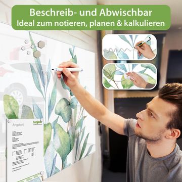 Die banjado Glas Magnettafel mit dem Motiv Motiv Eukalyptus Aquarell verbindet Funktionalität mit Stil. Sie ersetzt das Zettelchaos durch klare Strukturen und bringt dabei eine warme, natürliche Atmosphäre in Ihr Zuhause. Ob im Büro, in der Küche oder im Eingangsbereich - dieses Design-Board zieht Blicke an und sorgt für Ordnung mit Charakter.