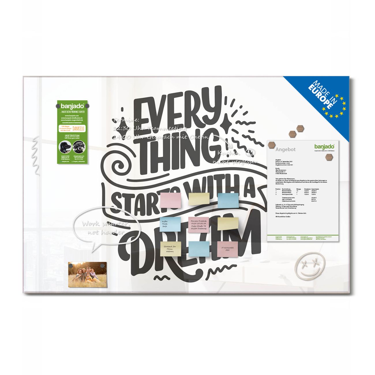 Glas Magnettafel im Querformat Motiv Everything starts with a Dream 2