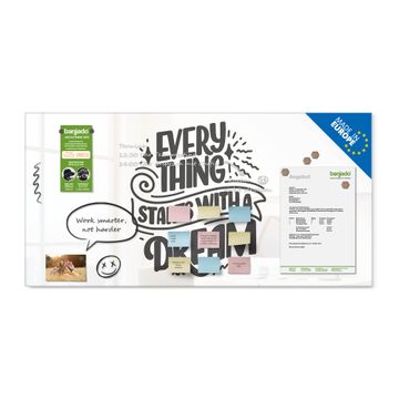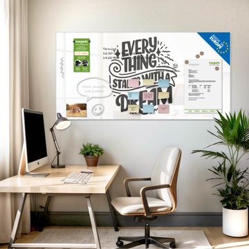 Die banjado Glas Magnettafel mit dem Motiv Motiv Everything starts with a Dream 2 verbindet Funktionalität mit Stil. Sie ersetzt das Zettelchaos durch klare Strukturen und bringt dabei eine warme, natürliche Atmosphäre in Ihr Zuhause. Ob im Büro, in der Küche oder im Eingangsbereich - dieses Design-Board zieht Blicke an und sorgt für Ordnung mit Charakter.