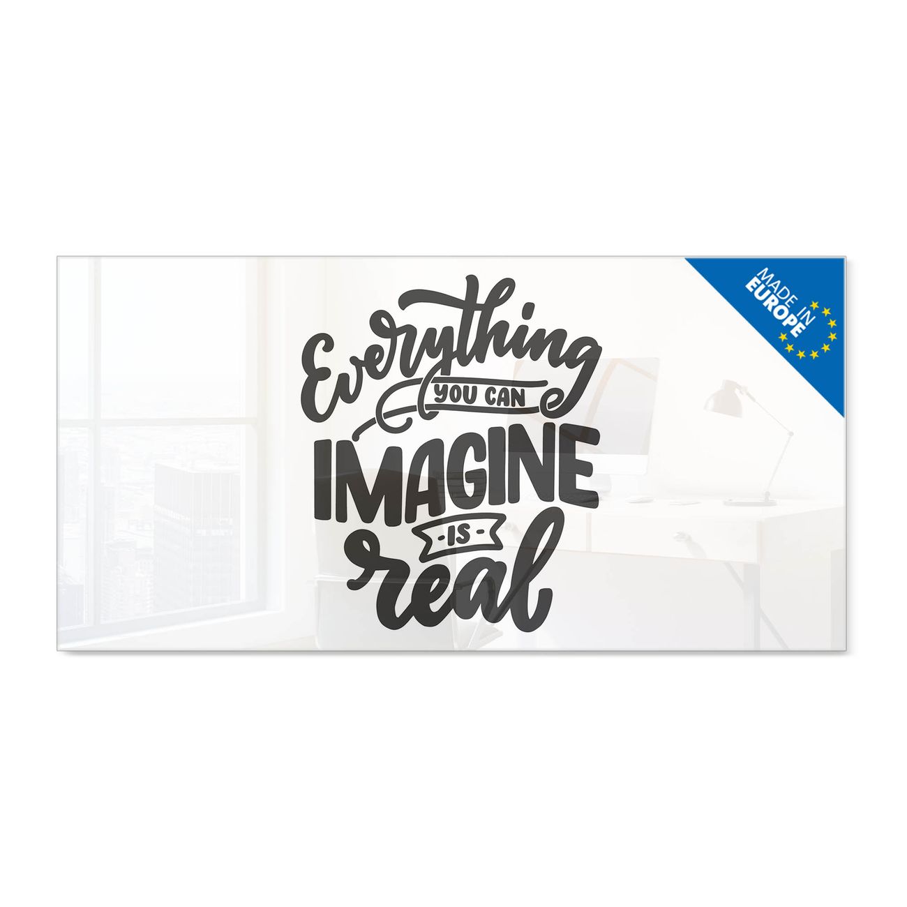 Glas Magnettafel im Querformat Motiv Everything you can imagine is real 2