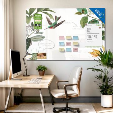 Die banjado Glas Magnettafel mit dem Motiv Motiv Exotisches Paradies verbindet Funktionalität mit Stil. Sie ersetzt das Zettelchaos durch klare Strukturen und bringt dabei eine warme, natürliche Atmosphäre in Ihr Zuhause. Ob im Büro, in der Küche oder im Eingangsbereich - dieses Design-Board zieht Blicke an und sorgt für Ordnung mit Charakter.