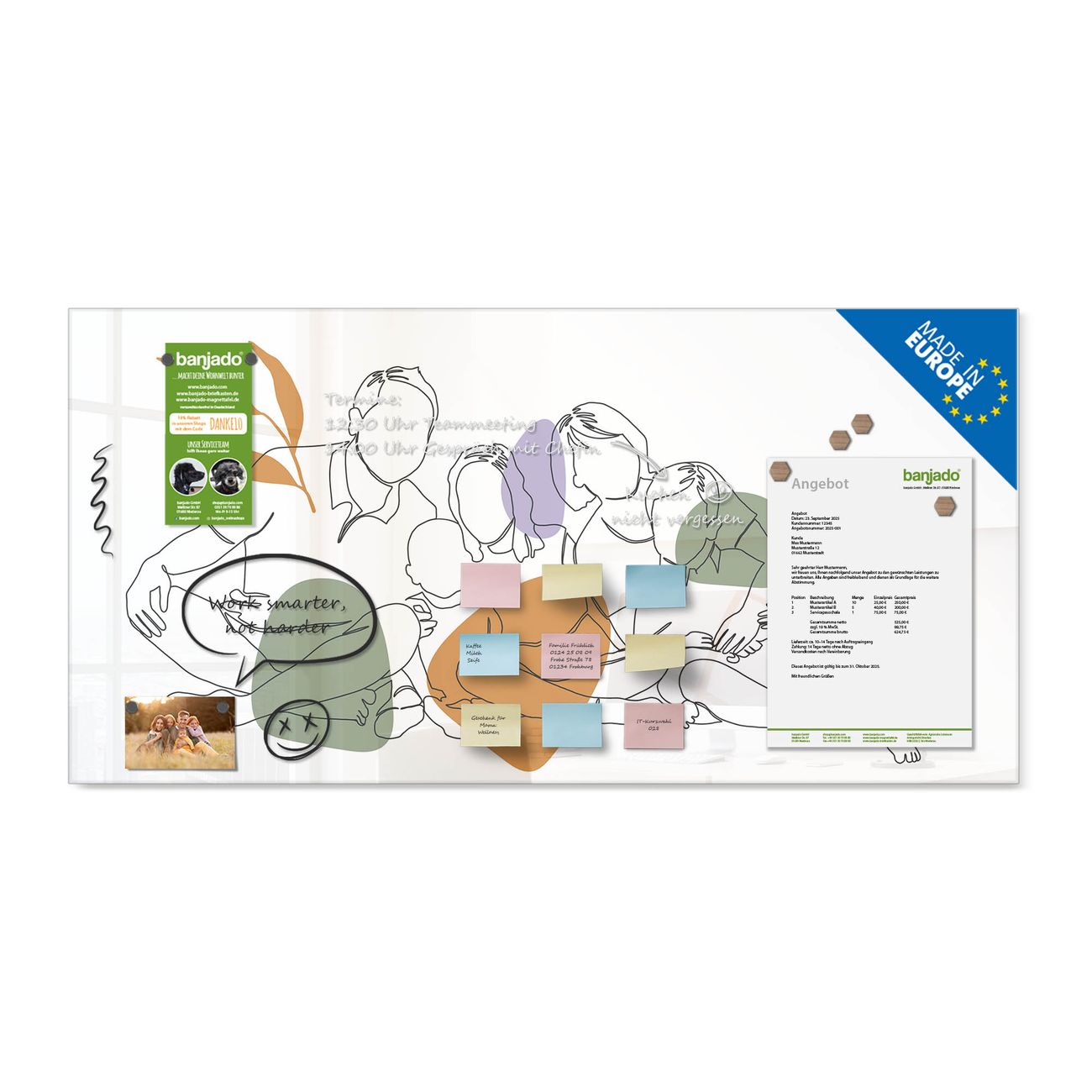 Jede Glas Magnettafel wird in unserer Werkstatt von Hand gefertigt und sorgfältig geprüft. So erhalten Sie ein echtes Qualitätsprodukt, das Funktion und Ästhetik perfekt vereint.?? Warum banjado?
