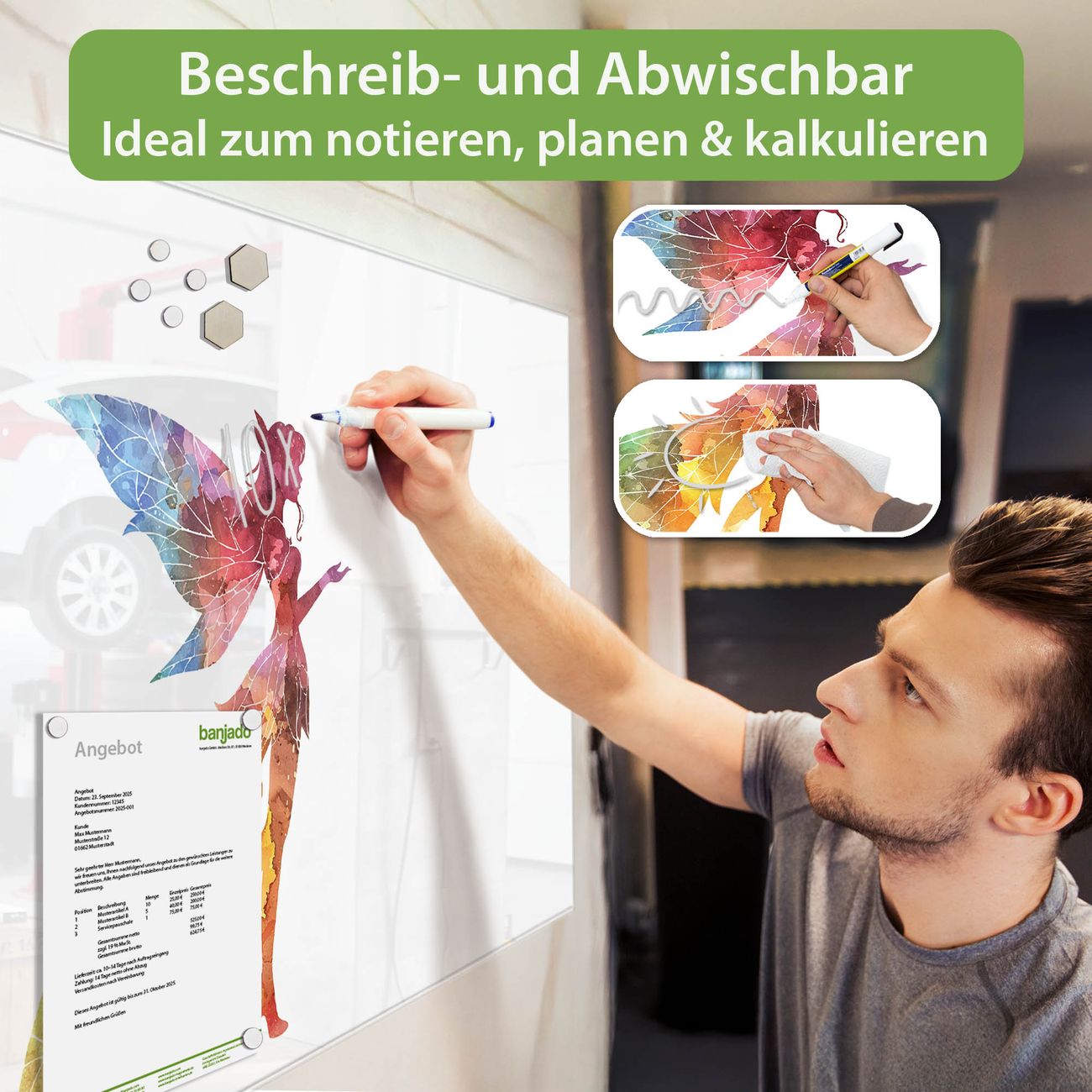 Jede Glas Magnettafel wird in unserer Werkstatt von Hand gefertigt und sorgfältig geprüft. So erhalten Sie ein echtes Qualitätsprodukt, das Funktion und Ästhetik perfekt vereint.?? Warum banjado?