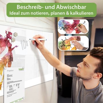 Auf der glatten Glasoberfläche lassen sich Termine, Rezepte oder Notizen ganz einfach mit Kreidestiften festhalten und rückstandslos entfernen. Starke Neodym-Magnete halten Ihre wichtigsten Erinnerungen sicher an Ort und Stelle. So entsteht Ihre ganz persönliche Ideenwand - jeden Tag neu.