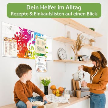 Auf der glatten Glasoberfläche lassen sich Termine, Rezepte oder Notizen ganz einfach mit Kreidestiften festhalten und rückstandslos entfernen. Starke Neodym-Magnete halten Ihre wichtigsten Erinnerungen sicher an Ort und Stelle. So entsteht Ihre ganz persönliche Ideenwand - jeden Tag neu.