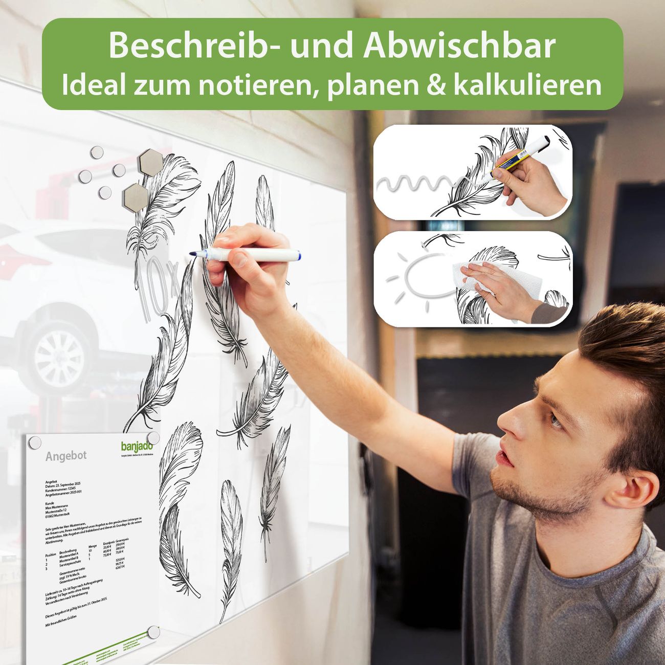 Jede Glas Magnettafel wird in unserer Werkstatt von Hand gefertigt und sorgfältig geprüft. So erhalten Sie ein echtes Qualitätsprodukt, das Funktion und Ästhetik perfekt vereint.?? Warum banjado?