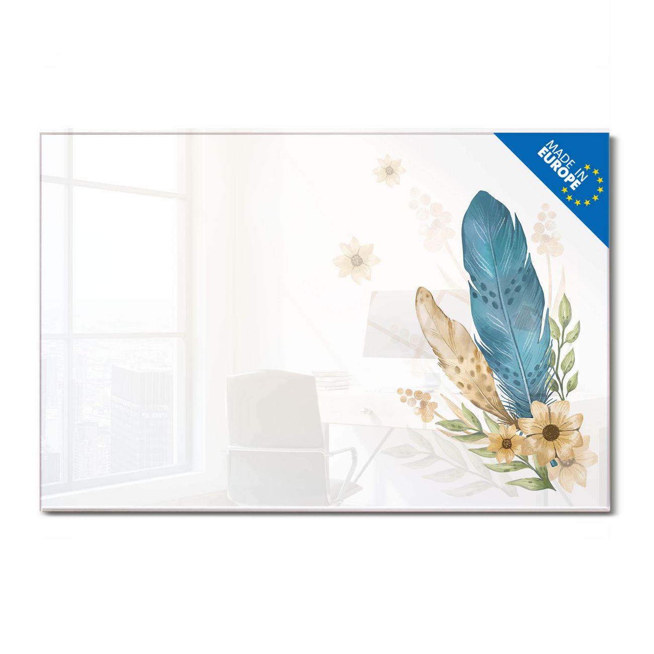 Glas Magnettafel im Querformat Motiv Federn und Blüten