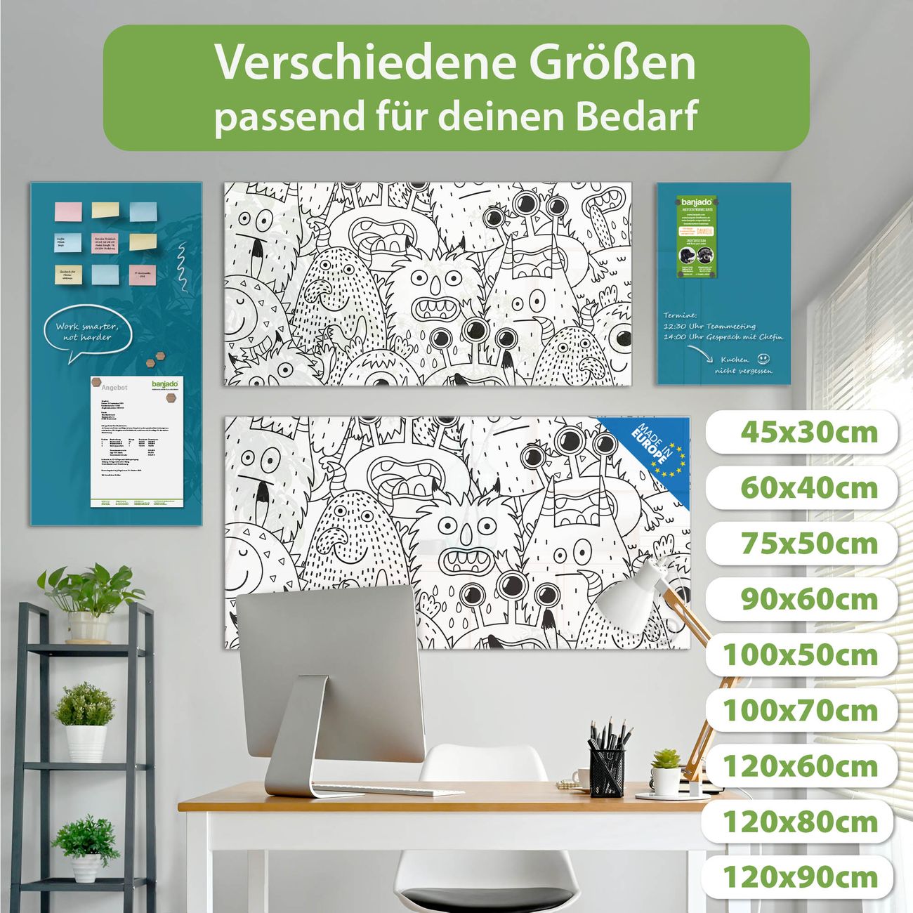 Jede Glas Magnettafel wird in unserer Werkstatt von Hand gefertigt und sorgfältig geprüft. So erhalten Sie ein echtes Qualitätsprodukt, das Funktion und Ästhetik perfekt vereint.?? Warum banjado?