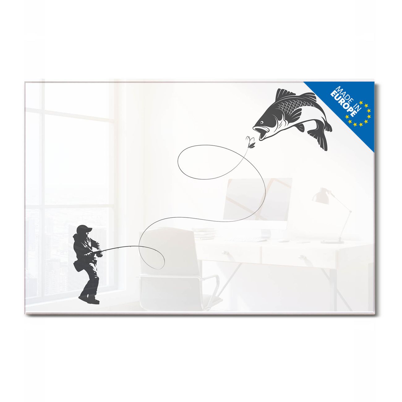 Glas Magnettafel im Querformat Motiv Fischerfreude