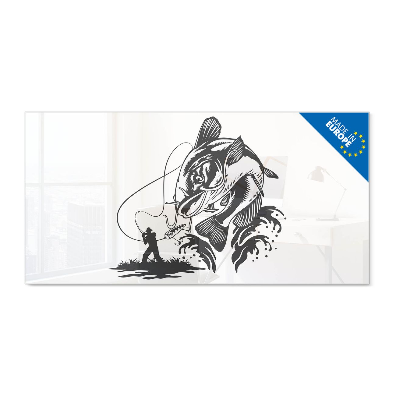 Glas Magnettafel im Querformat Motiv Fischfang Abenteuer
