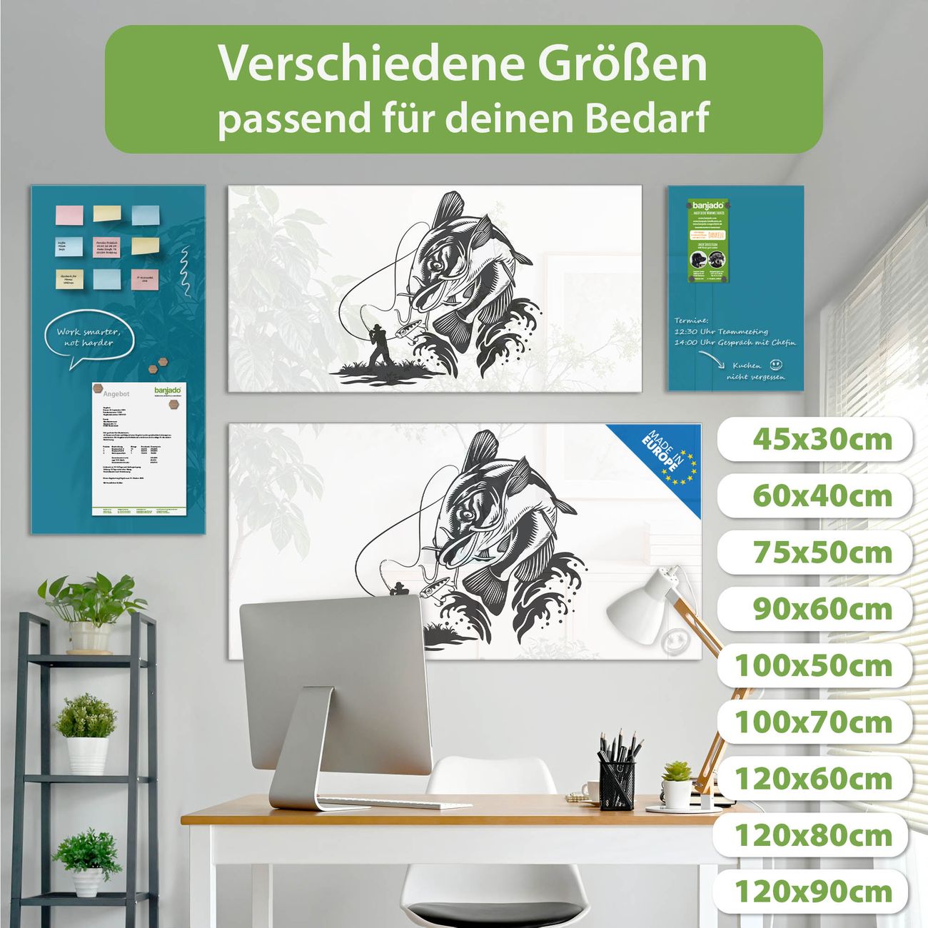 Jede Glas Magnettafel wird in unserer Werkstatt von Hand gefertigt und sorgfältig geprüft. So erhalten Sie ein echtes Qualitätsprodukt, das Funktion und Ästhetik perfekt vereint.?? Warum banjado?