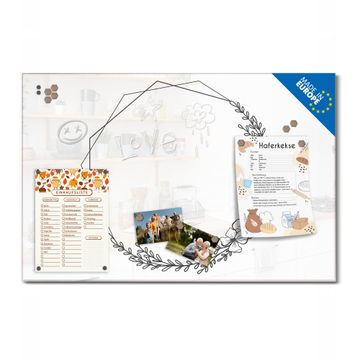 Auf der glatten Glasoberfläche lassen sich Termine, Rezepte oder Notizen ganz einfach mit Kreidestiften festhalten und rückstandslos entfernen. Starke Neodym-Magnete halten Ihre wichtigsten Erinnerungen sicher an Ort und Stelle. So entsteht Ihre ganz persönliche Ideenwand - jeden Tag neu.
