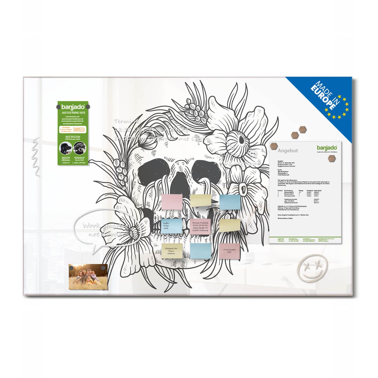 Glas Magnettafel im Querformat Motiv Floral Skull 2