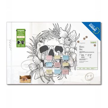 Die banjado Glas Magnettafel mit dem Motiv Motiv Floral Skull 2 verbindet Funktionalität mit Stil. Sie ersetzt das Zettelchaos durch klare Strukturen und bringt dabei eine warme, natürliche Atmosphäre in Ihr Zuhause. Ob im Büro, in der Küche oder im Eingangsbereich - dieses Design-Board zieht Blicke an und sorgt für Ordnung mit Charakter.