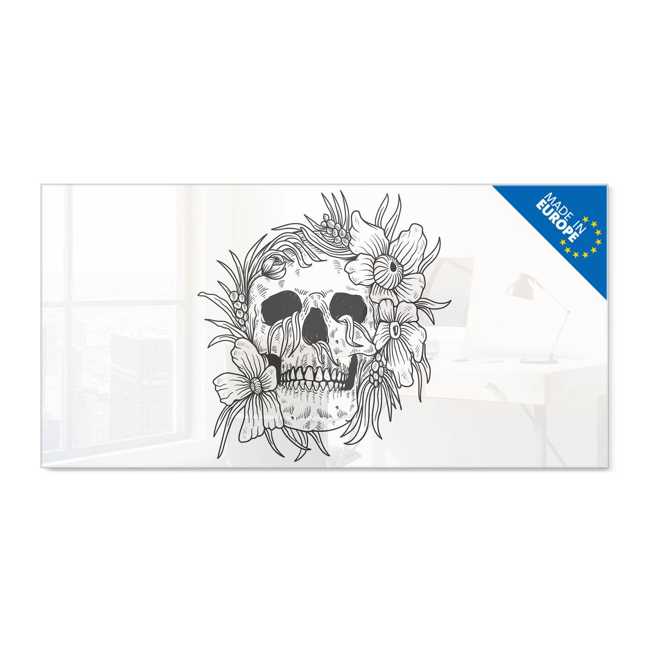 Glas Magnettafel im Querformat Motiv Floral Skull 2