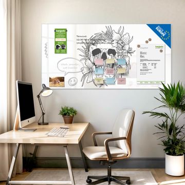 Die banjado Glas Magnettafel mit dem Motiv Motiv Floral Skull 2 verbindet Funktionalität mit Stil. Sie ersetzt das Zettelchaos durch klare Strukturen und bringt dabei eine warme, natürliche Atmosphäre in Ihr Zuhause. Ob im Büro, in der Küche oder im Eingangsbereich - dieses Design-Board zieht Blicke an und sorgt für Ordnung mit Charakter.