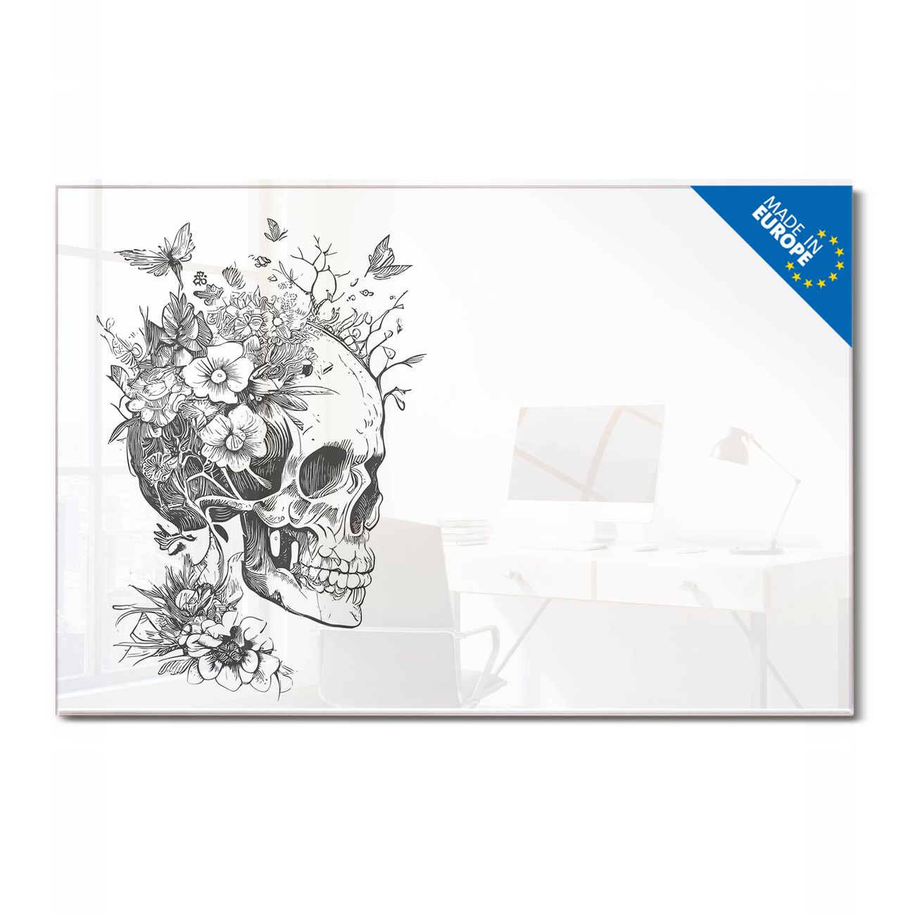 Glas Magnettafel im Querformat Motiv Floral Skull