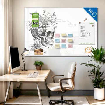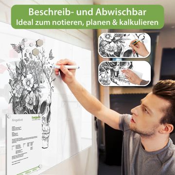 Die banjado Glas Magnettafel mit dem Motiv Motiv Floral Skull verbindet Funktionalität mit Stil. Sie ersetzt das Zettelchaos durch klare Strukturen und bringt dabei eine warme, natürliche Atmosphäre in Ihr Zuhause. Ob im Büro, in der Küche oder im Eingangsbereich - dieses Design-Board zieht Blicke an und sorgt für Ordnung mit Charakter.