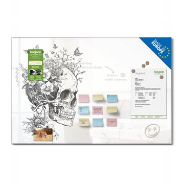 Die banjado Glas Magnettafel mit dem Motiv Motiv Floral Skull verbindet Funktionalität mit Stil. Sie ersetzt das Zettelchaos durch klare Strukturen und bringt dabei eine warme, natürliche Atmosphäre in Ihr Zuhause. Ob im Büro, in der Küche oder im Eingangsbereich - dieses Design-Board zieht Blicke an und sorgt für Ordnung mit Charakter.