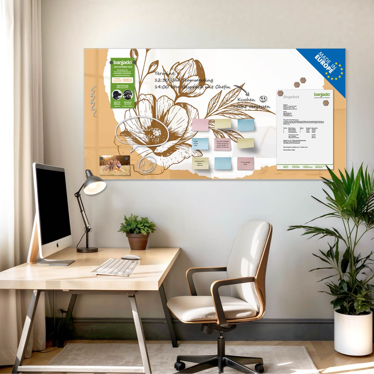 Die banjado Glas Magnettafel mit dem Motiv Motiv Florale Eleganz 2 verbindet Funktionalität mit Stil. Sie ersetzt das Zettelchaos durch klare Strukturen und bringt dabei eine warme, natürliche Atmosphäre in Ihr Zuhause. Ob im Büro, in der Küche oder im Eingangsbereich - dieses Design-Board zieht Blicke an und sorgt für Ordnung mit Charakter.