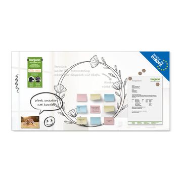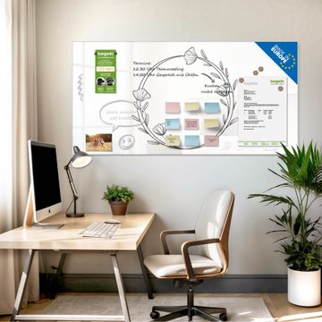 Auf der glatten Glasoberfläche lassen sich Termine, Rezepte oder Notizen ganz einfach mit Kreidestiften festhalten und rückstandslos entfernen. Starke Neodym-Magnete halten Ihre wichtigsten Erinnerungen sicher an Ort und Stelle. So entsteht Ihre ganz persönliche Ideenwand - jeden Tag neu.