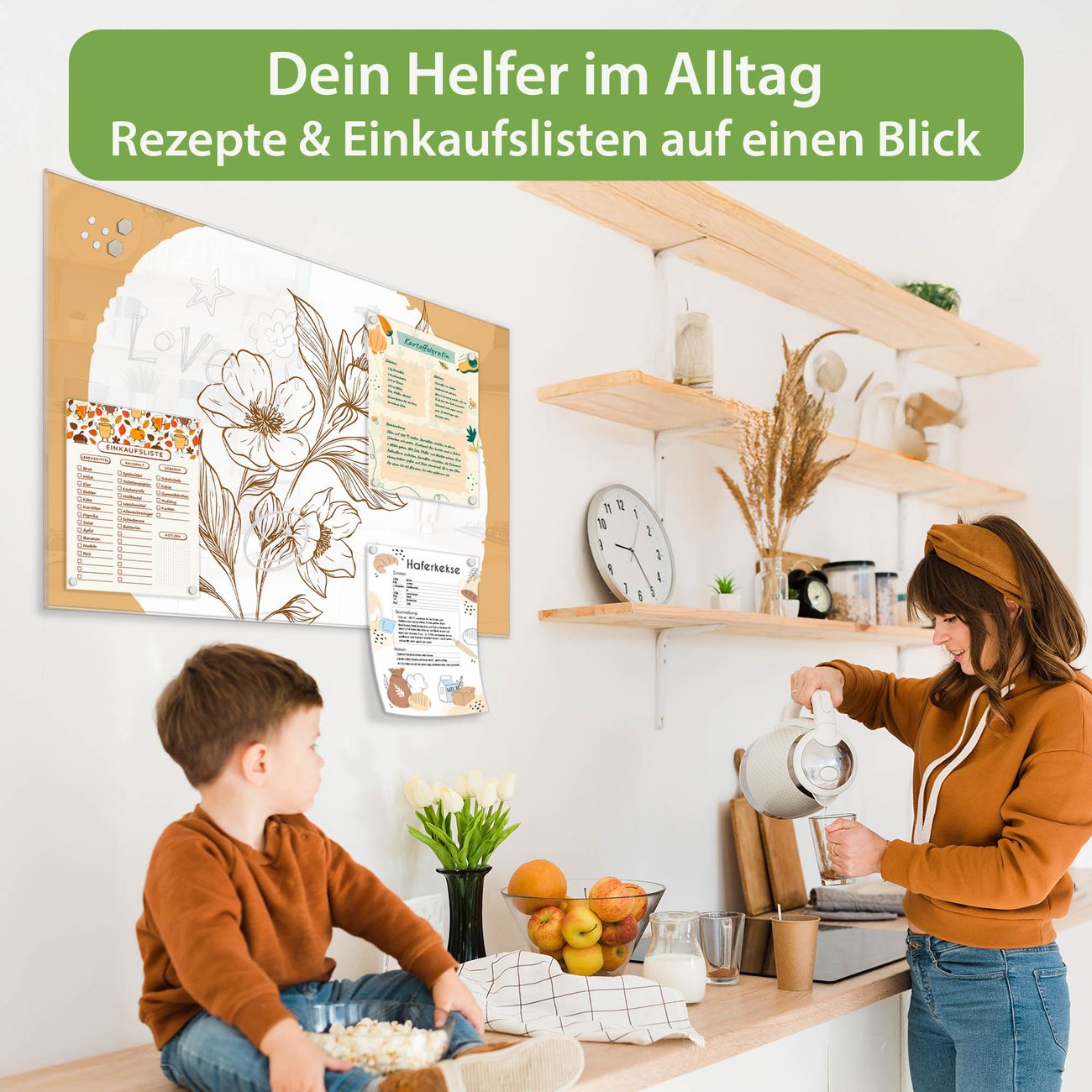 Ein Stück Design, das Ihren Alltag organisiert. Schreiben, heften, inspirieren - alles an einem Ort. Qualität, die man spürt. Montage leicht gemacht. Handwerk mit Herz - veredelt in Sachsen. Einzigartiges Design mit Motiv Motiv Florale Skizze Beschreibbare Glasoberfläche, leicht zu reinigen Starke Magnetkraft durch Stahlrückwand Inklusive 4 Neodym-Magneten Flexible Montageoptionen Handveredelt in Sachsen - Qualität, die bleibt