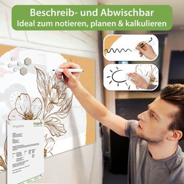 Die banjado Glas Magnettafel mit dem Motiv Motiv Florale Skizze verbindet Funktionalität mit Stil. Sie ersetzt das Zettelchaos durch klare Strukturen und bringt dabei eine warme, natürliche Atmosphäre in Ihr Zuhause. Ob im Büro, in der Küche oder im Eingangsbereich - dieses Design-Board zieht Blicke an und sorgt für Ordnung mit Charakter.