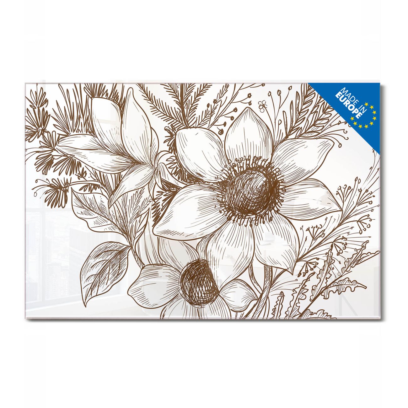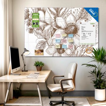 Glas Magnettafel im Querformat Motiv Florale Zeichnung