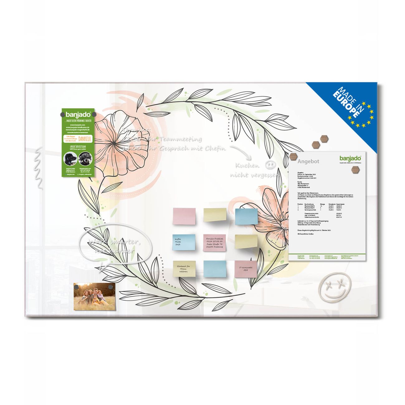Glas Magnettafel im Querformat Motiv Floraler Blütenkranz