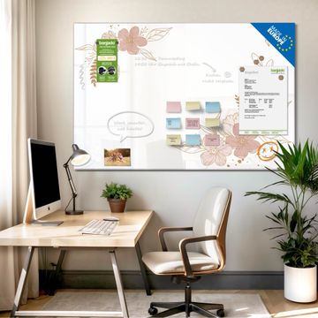 Die banjado Glas Magnettafel mit dem Motiv Motiv Floraler Kranz verbindet Funktionalität mit Stil. Sie ersetzt das Zettelchaos durch klare Strukturen und bringt dabei eine warme, natürliche Atmosphäre in Ihr Zuhause. Ob im Büro, in der Küche oder im Eingangsbereich - dieses Design-Board zieht Blicke an und sorgt für Ordnung mit Charakter.