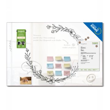 Die banjado Glas Magnettafel mit dem Motiv Motiv Floraler Linienkranz verbindet Funktionalität mit Stil. Sie ersetzt das Zettelchaos durch klare Strukturen und bringt dabei eine warme, natürliche Atmosphäre in Ihr Zuhause. Ob im Büro, in der Küche oder im Eingangsbereich - dieses Design-Board zieht Blicke an und sorgt für Ordnung mit Charakter.