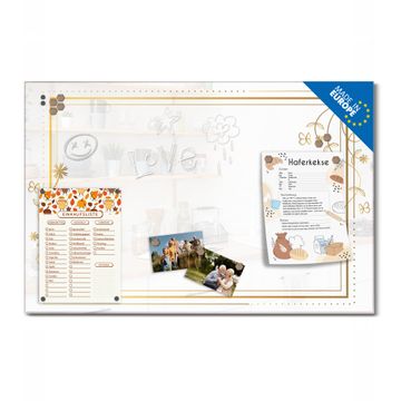 Auf der glatten Glasoberfläche lassen sich Termine, Rezepte oder Notizen ganz einfach mit Kreidestiften festhalten und rückstandslos entfernen. Starke Neodym-Magnete halten Ihre wichtigsten Erinnerungen sicher an Ort und Stelle. So entsteht Ihre ganz persönliche Ideenwand - jeden Tag neu.