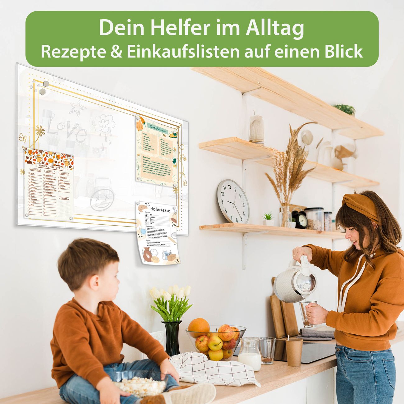 Auf der glatten Glasoberfläche lassen sich Termine, Rezepte oder Notizen ganz einfach mit Kreidestiften festhalten und rückstandslos entfernen. Starke Neodym-Magnete halten Ihre wichtigsten Erinnerungen sicher an Ort und Stelle. So entsteht Ihre ganz persönliche Ideenwand - jeden Tag neu.