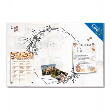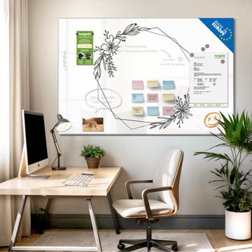 Glas Magnettafel im Querformat Motiv Floraler Rahmen