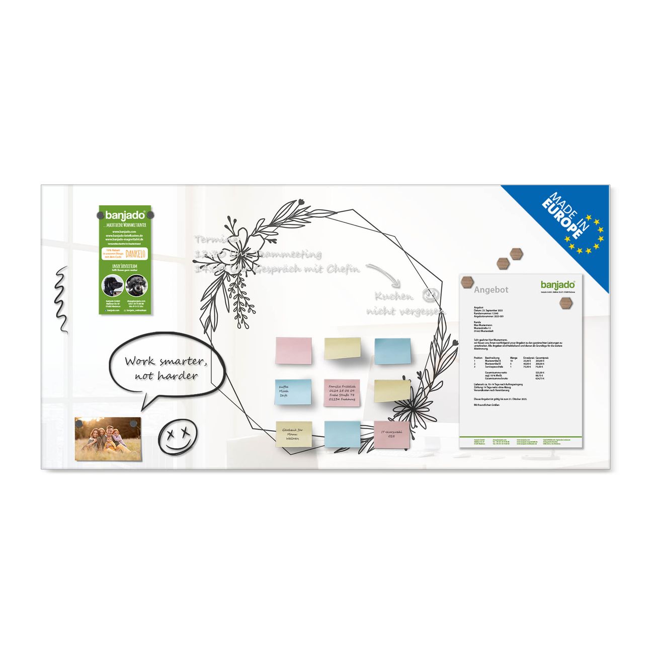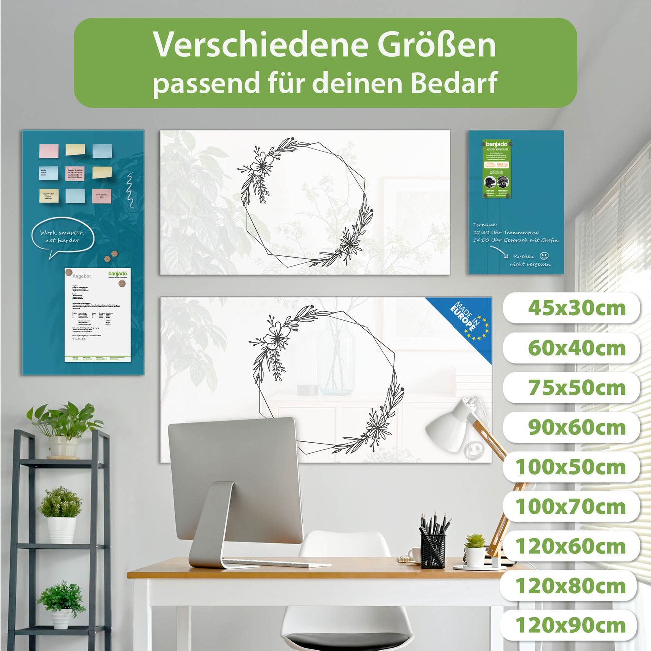 Glas Magnettafel im Querformat Motiv Floraler Rahmen