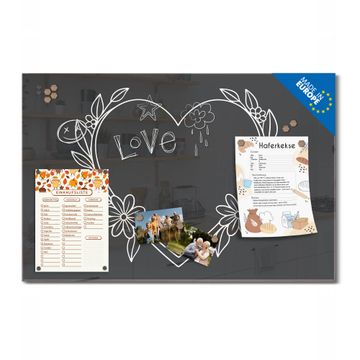 Auf der glatten Glasoberfläche lassen sich Termine, Rezepte oder Notizen ganz einfach mit Kreidestiften festhalten und rückstandslos entfernen. Starke Neodym-Magnete halten Ihre wichtigsten Erinnerungen sicher an Ort und Stelle. So entsteht Ihre ganz persönliche Ideenwand - jeden Tag neu.