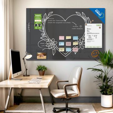 Glas Magnettafel im Querformat Motiv Florales Herzdesign