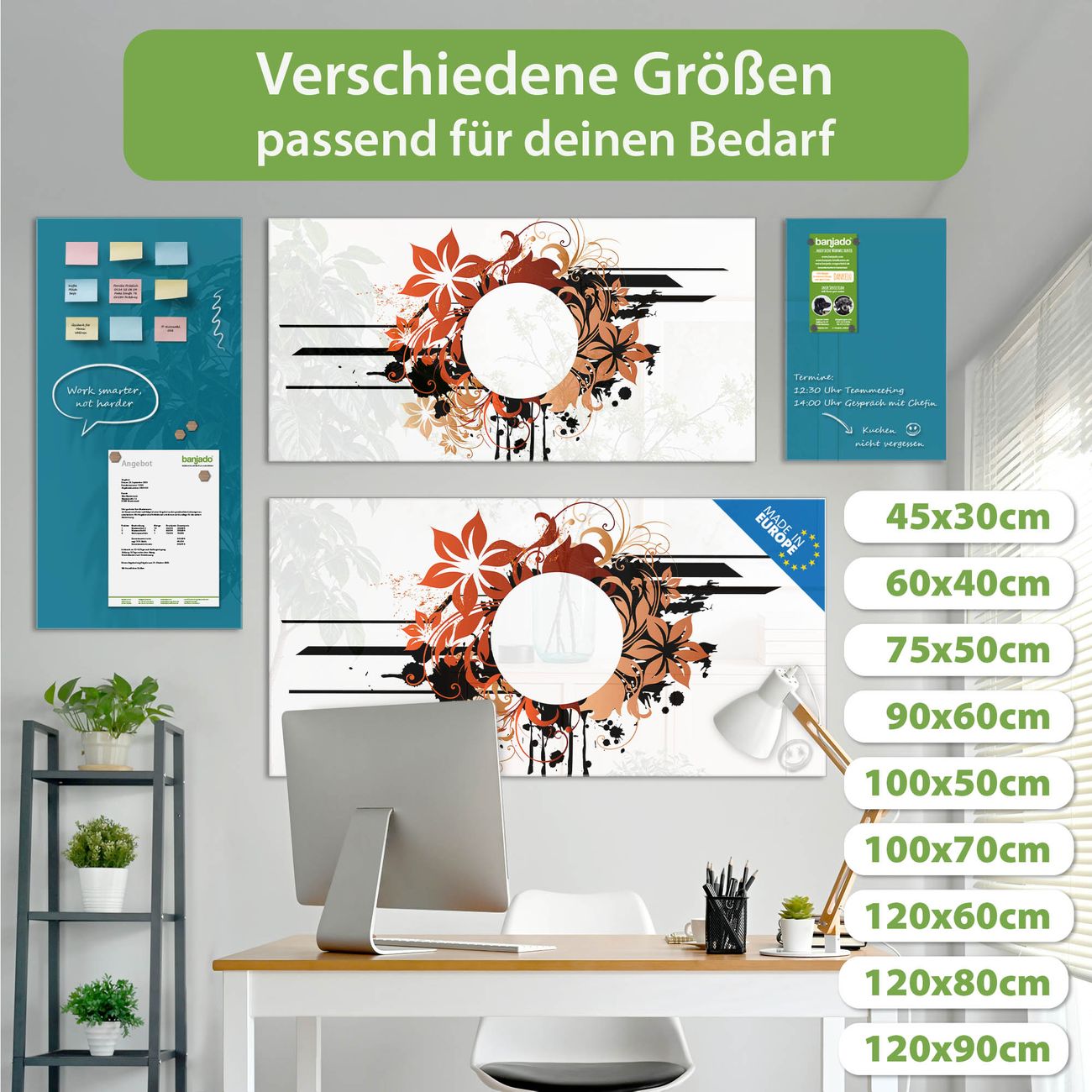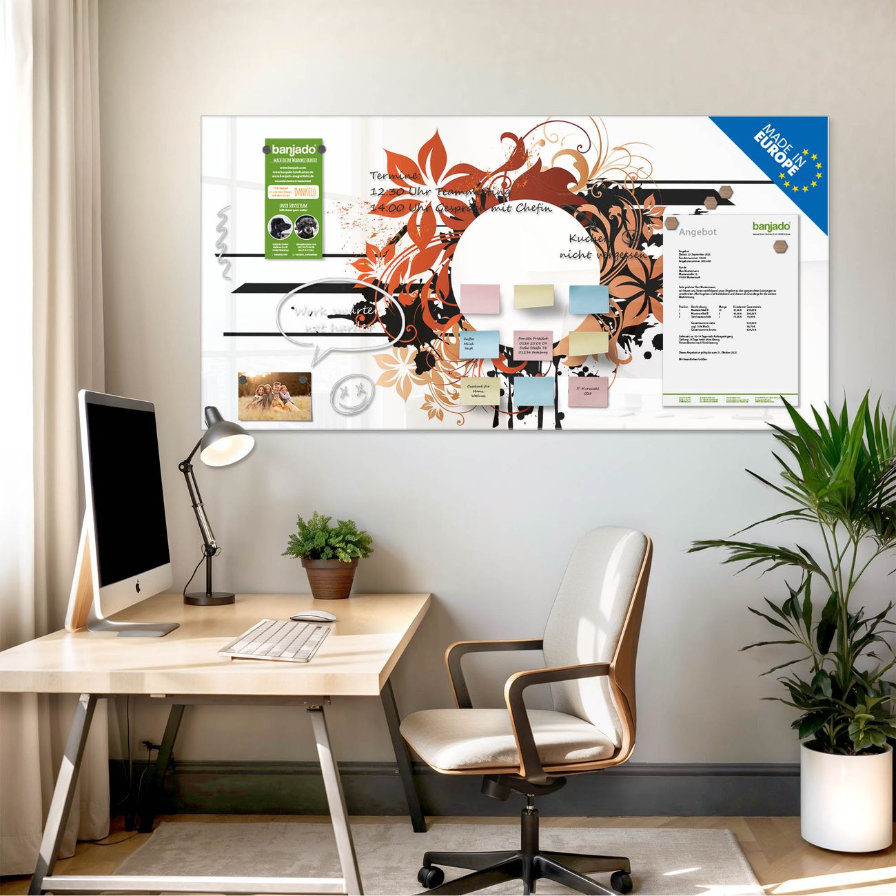 Jede Glas Magnettafel wird in unserer Werkstatt von Hand gefertigt und sorgfältig geprüft. So erhalten Sie ein echtes Qualitätsprodukt, das Funktion und Ästhetik perfekt vereint.?? Warum banjado?