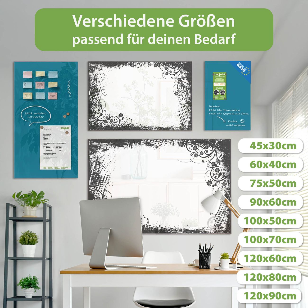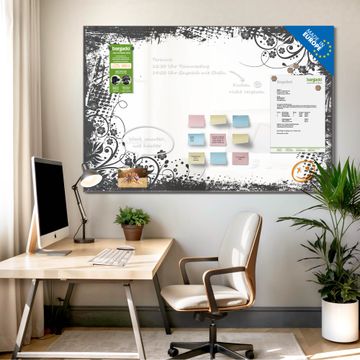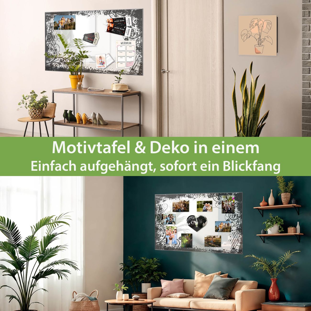 Glas Magnettafel im Querformat Motiv Florales Schwarz-Weiß Muster