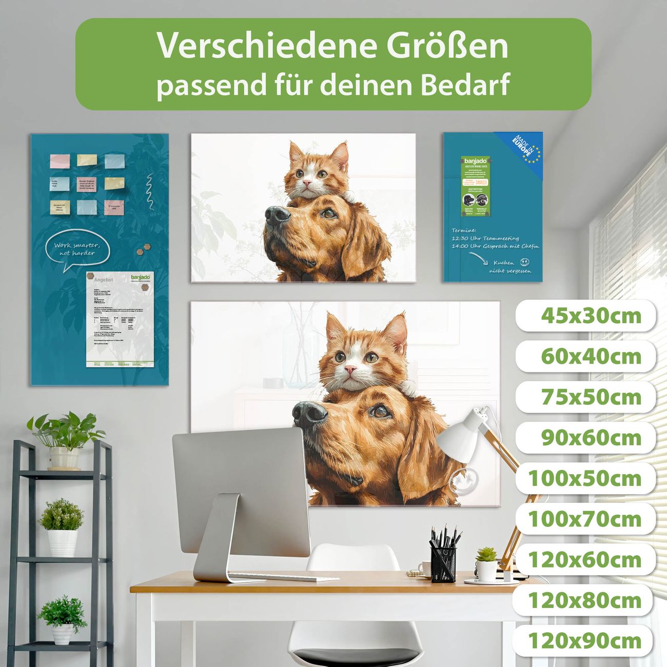 Jede Glas Magnettafel wird in unserer Werkstatt von Hand gefertigt und sorgfältig geprüft. So erhalten Sie ein echtes Qualitätsprodukt, das Funktion und Ästhetik perfekt vereint.?? Warum banjado?